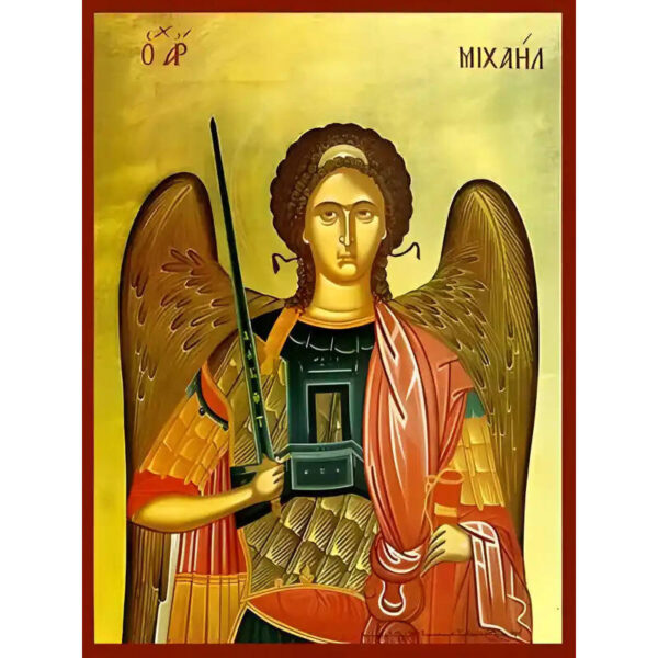 Εικόνα Ορθοδοξίας με περίγραμμα χρυσό σε ξύλο Φλαμουρίας με βάση Εικόνα ΑΡΧΑΓΓΕΛΟΣ ΜΙΧΑΗΛ Χειροποίητη Ελληνορθόδοξη εικόνα του Ιησού Χριστού, Κρεμαστή πλάκα βυζαντινής τέχνης, χριστιανική τέχνη Διάσταση 15×11 cm (5,9×4,3 ίντσες) INTRAEK-337757864493
