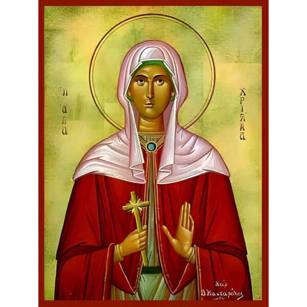Εικόνα Ορθοδοξίας με περίγραμμα χρυσό σε ξύλο Φλαμουρίας με βάση Εικόνα ΑΓΙΑ ΧΡΙΣΤΙΝΑ, Η ΜΕΓΑΛΟΜΑΡΤΥΣ, ΤΥΡΟΥ Χειροποίητη Ελληνορθόδοξη εικόνα του Ιησού Χριστού, Κρεμαστή πλάκα βυζαντινής τέχνης, χριστιανική τέχνη Διάσταση 40×30 cm (10,2×7,9 ίντσες) INTRAEK-1447757865208