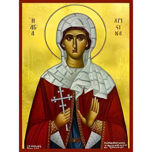 Εικόνα Ορθοδοξίας με περίγραμμα χρυσό σε ξύλο Φλαμουρίας με βάση Εικόνα ΑΓΙΑ ΧΡΙΣΤΙΝΑ, Η ΜΕΓΑΛΟΜΑΡΤΥΣ, ΤΥΡΟΥ Χειροποίητη Ελληνορθόδοξη εικόνα του Ιησού Χριστού, Κρεμαστή πλάκα βυζαντινής τέχνης, χριστιανική τέχνη Διάσταση 40×30 cm (10,2×7,9 ίντσες) INTRAEK-1447757865207