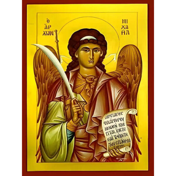 Εικόνα Ορθοδοξίας με περίγραμμα χρυσό σε ξύλο Φλαμουρίας με βάση Εικόνα ΑΡΧΑΓΓΕΛΟΣ ΜΙΧΑΗΛ Χειροποίητη Ελληνορθόδοξη εικόνα του Ιησού Χριστού, Κρεμαστή πλάκα βυζαντινής τέχνης, χριστιανική τέχνη Διάσταση 15×11 cm (5,9×4,3 ίντσες) INTRAEK-337757864490
