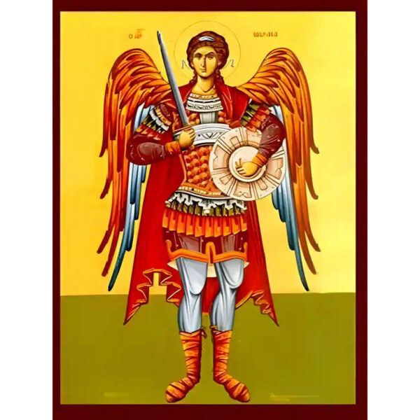 Εικόνα Ορθοδοξίας με περίγραμμα χρυσό σε ξύλο Φλαμουρίας με βάση Εικόνα ΑΡΧΑΓΓΕΛΟΣ ΜΙΧΑΗΛ, ΟΛΟΣΩΜΟΣ Χειροποίητη Ελληνορθόδοξη εικόνα του Ιησού Χριστού, Κρεμαστή πλάκα βυζαντινής τέχνης, χριστιανική τέχνη Διάσταση 15×11 cm (5,9×4,3 ίντσες) INTRAEK-337757864481