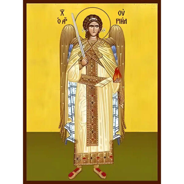 Εικόνα Ορθοδοξίας με περίγραμμα χρυσό σε ξύλο Φλαμουρίας με βάση Εικόνα ΑΡΧΑΓΓΕΛΟΣ ΟΥΡΙΗΛ, ΟΛΟΣΩΜΟΣ Χειροποίητη Ελληνορθόδοξη εικόνα του Ιησού Χριστού, Κρεμαστή πλάκα βυζαντινής τέχνης, χριστιανική τέχνη Διάσταση 15×11 cm (5,9×4,3 ίντσες) INTRAEK-337757864476
