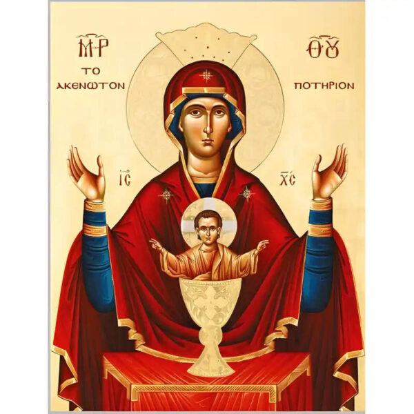 Η εικόνα της Παναγίας που ονομάζεται «Ακένωτον Ποτήριον της Ζωής» έγινε γνωστή στον Ορθόδοξο κόσμο το 1878. Παρουσιάζει τη Θεοτόκο με ορθάνοιχτα χέρια και τον Ιησού Χριστό, βρέφος να στέκεται μέσα στο Άγιο Ποτήριο.