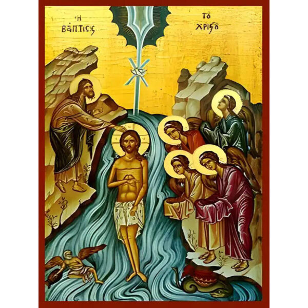 Εικόνα Ορθοδοξίας με περίγραμμα χρυσό σε ξύλο Φλαμουρίας με βάση Εικόνα ΒΑΠΤΙΣΙΣ ΧΡΙΣΤΟΥ Χειροποίητη Ελληνορθόδοξη εικόνα του Ιησού Χριστού, Κρεμαστή πλάκα βυζαντινής τέχνης, χριστιανική τέχνη Διάσταση 15×11 cm (5,9×4,3 ίντσες) INTRAEK-337757864471