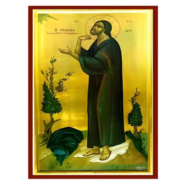 Βασικά Χαρακτηριστικά: – Σχέδιο: Κλασική βυζαντινή εικονογραφία με ζωηρό κόκκινο περίγραμμα – Υλικό: Ξύλο Μασίφ Φλαμουρία υψηλής αντοχής με προστατευτικό βερνίκι για ποιότητα που διαρκεί – Προέλευση: Χειροποίητο στην Ελλάδα – Σκοπός: Ιδανικό για γωνιές προσευχής, εκκλησίες, διακόσμηση σπιτιού ή ως δώρο με νόημα Διαθέσιμα μεγέθη: 10×7 cm (3,9 x 2,8 ίντσες) 15×11 cm (5,9 x 4,3 ίντσες) 21×15 cm (8,3 x 5,9 ίντσες) 26×20 cm (10,2 x 7,9 ίντσες) 40×30 cm (15,8 x 11,8 ίντσες) 45×35 cm (17,7 x 13,8 ίντσες) 50×40 cm (19,7 x 15,8 ίντσες)► Εικόνα της Προσευχής στη Γεθσημανή, ξύλινη. Χειροποίητη ξύλινη εικόνα, ειδικής επεξεργασίας σε σκληρό Φλαμουριά Ξύλο Εικόνα Ορθόδοξης τέχνης, σκαλισμένη ή τυπωμένη σε ξύλο φλαμουριάς υψηλής ποιότητας. Η φυσική απαλότητα και ομοιομορφία του ξύλου τονίζει κάθε λεπτομέρεια του εικονίσματος, αναδεικνύοντας τη βαθιά πνευματικότητα και την ιερότητα της παράδοσης. Ιδανική για οικιακό εικονοστάσι, δώρο βάπτισης, γάμου ή αφιέρωμα σε ναό. Το ξύλο έχει υποστεί ειδική επεξεργασία για αντοχή και αισθητική αρμονία, κρατώντας ζωντανά τα χρώματα και τη μορφή του προσώπου του Αγίου. με ανεξίτηλα χρώματα σε λεπτό καμβά.