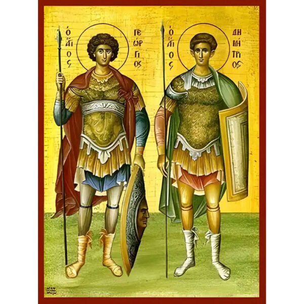 Εικόνα Ορθοδοξίας με περίγραμμα χρυσό σε ξύλο Φλαμουρίας με βάση Εικόνα ΑΓΙΟΙ ΓΕΩΡΓΙΟΣ ΚΑΙ ΔΗΜΗΤΡΙΟΣ, ΟΛΟΣΩΜΟΙ Χειροποίητη Ελληνορθόδοξη εικόνα του Ιησού Χριστού, Κρεμαστή πλάκα βυζαντινής τέχνης, χριστιανική τέχνη Διάσταση 40×30 cm (10,2×7,9 ίντσες) INTRAEK-1447757865178