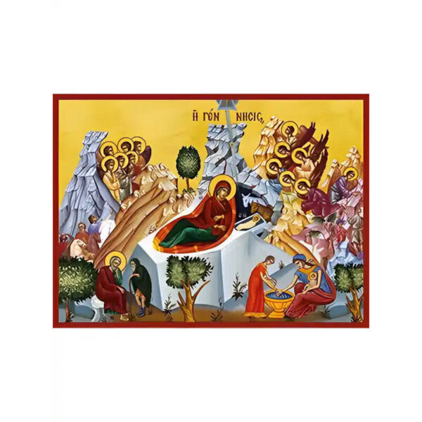 Εικόνα Ορθοδοξίας με περίγραμμα χρυσό σε ξύλο Φλαμουρίας με βάση Εικόνα ΓΕΝΝΗΣΙΣ ΧΡΙΣΤΟΥ Χειροποίητη Ελληνορθόδοξη εικόνα του Ιησού Χριστού, Κρεμαστή πλάκα βυζαντινής τέχνης, χριστιανική τέχνη Διάσταση 15×11 cm (5,9×4,3 ίντσες) INTRAEK-337757864458