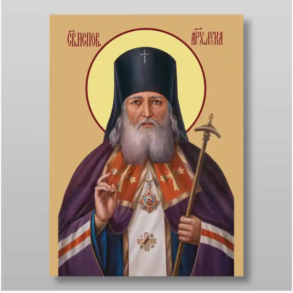Εικόνα Ορθοδοξίας με περίγραμμα χρυσό σε ξύλο Φλαμουρίας με βάση Άγιος Λούκα (Βοινό-Γιασενέτσκι), Χειροποίητη Ελληνορθόδοξη , Κρεμαστή πλάκα βυζαντινής τέχνης, χριστιανική τέχνη Διάσταση 15×11 cm (5,9 x 4,3 ίντσες) INTRAEK-2965