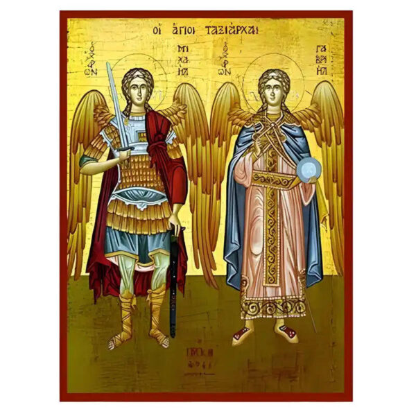 Βασικά Χαρακτηριστικά: – Σχέδιο: Κλασική βυζαντινή εικονογραφία με ζωηρό κόκκινο περίγραμμα – Υλικό: Ξύλο Μασίφ Φλαμουρία υψηλής αντοχής με προστατευτικό βερνίκι για ποιότητα που διαρκεί – Προέλευση: Χειροποίητο στην Ελλάδα – Σκοπός: Ιδανικό για γωνιές προσευχής, εκκλησίες, διακόσμηση σπιτιού ή ως δώρο με νόημα Διαθέσιμα μεγέθη: 10×7 cm (3,9 x 2,8 ίντσες) 15×11 cm (5,9 x 4,3 ίντσες) 21×15 cm (8,3 x 5,9 ίντσες) 26×20 cm (10,2 x 7,9 ίντσες) 40×30 cm (15,8 x 11,8 ίντσες) 45×35 cm (17,7 x 13,8 ίντσες) 50×40 cm (19,7 x 15,8 ίντσες)► Εικόνα των Αγίων Ταξιαρχών Μιχαήλ και Γαβριήλ