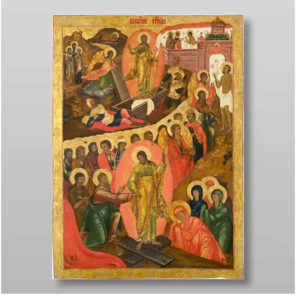 Εικόνα Ορθοδοξίας με περίγραμμα χρυσό σε ξύλο Φλαμουρίας με βάση Ανάσταση Χριστού. Το Harrowing of Hades Χειροποίητη Ελληνορθόδοξη , Κρεμαστή πλάκα βυζαντινής τέχνης, χριστιανική τέχνη Διάσταση 15×11 cm (5,9 x 4,3 ίντσες) INTRAEK-2954