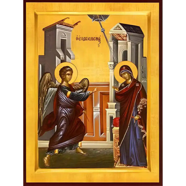 Εικόνα Ορθοδοξίας με περίγραμμα χρυσό σε ξύλο Φλαμουρίας με βάση Εικόνα ΕΥΑΓΓΕΛΙΣΜΟΣ ΘΕΟΤΟΚΟΥ Χειροποίητη Ελληνορθόδοξη εικόνα του Ιησού Χριστού, Κρεμαστή πλάκα βυζαντινής τέχνης, χριστιανική τέχνη Διάσταση 15×11 cm (5,9×4,3 ίντσες) INTRAEK-337757864425
