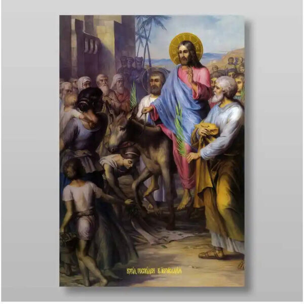 Εικόνα Ορθοδοξίας με περίγραμμα χρυσό σε ξύλο Φλαμουρίας με βάση Η είσοδος του Κυρίου στην Ιερουσαλήμ Κυριακή των Βαΐων Χειροποίητη Ελληνορθόδοξη , Κρεμαστή πλάκα βυζαντινής τέχνης, χριστιανική τέχνη Διάσταση 15×11 cm (5,9 x 4,3 ίντσες) INTRAEK-2938