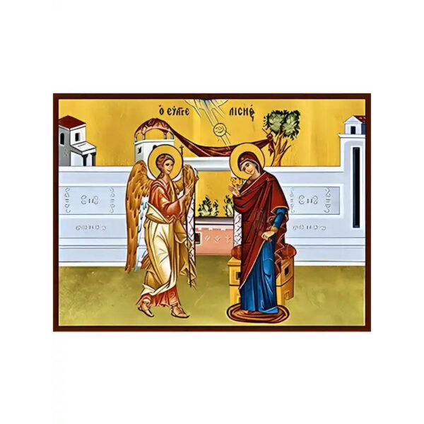 Εικόνα Ορθοδοξίας με περίγραμμα χρυσό σε ξύλο Φλαμουρίας με βάση Εικόνα ΕΥΑΓΓΕΛΙΣΜΟΣ ΘΕΟΤΟΚΟΥ Χειροποίητη Ελληνορθόδοξη εικόνα του Ιησού Χριστού, Κρεμαστή πλάκα βυζαντινής τέχνης, χριστιανική τέχνη Διάσταση 15×11 cm (5,9×4,3 ίντσες) INTRAEK-337757864423