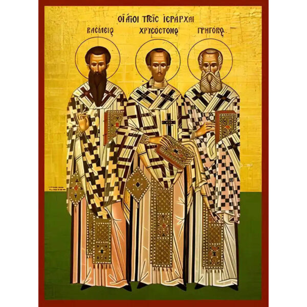 Εικόνα Ορθοδοξίας με περίγραμμα χρυσό σε ξύλο Φλαμουρίας με βάση Εικόνα ΑΓΙΟΙ ΤΡΕΙΣ ΙΕΡΑΡΧΕΣ, ΒΑΣΙΛΕΙΟΣ Ο ΜΕΓΑΣ, ΓΡΗΓΟΡΙΟΣ Ο ΘΕΟΛΟΓΟΣ, ΙΩΑΝΝΗΣ Ο ΧΡΥΣΟΣΤΟΜΟΣ, ΟΛΟΣΩΜΟΙ Χειροποίητη Ελληνορθόδοξη εικόνα του Ιησού Χριστού, Κρεμαστή πλάκα βυζαντινής τέχνης, χριστιανική τέχνη Διάσταση 40×30 cm (10,2×7,9 ίντσες) INTRAEK-1447757865138