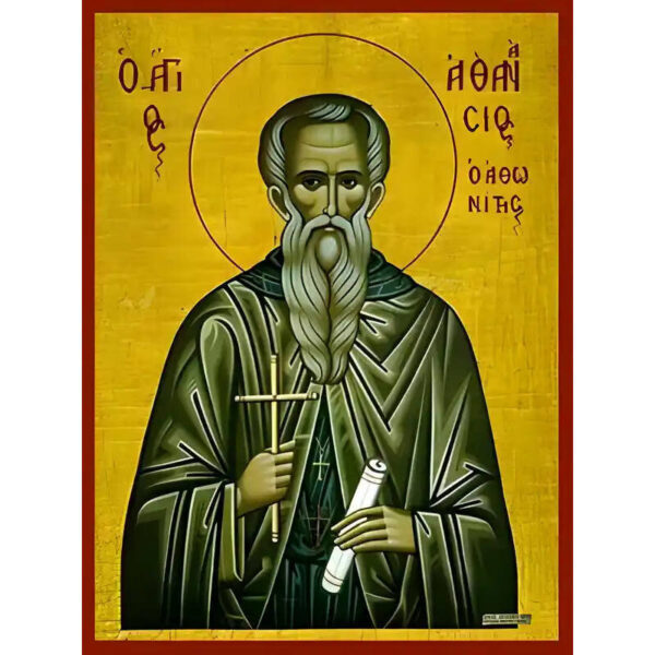 Εικόνα Ορθοδοξίας με περίγραμμα χρυσό σε ξύλο Φλαμουρίας με βάση Εικόνα ΑΓΙΟΣ ΑΘΑΝΑΣΙΟΣ, Ο ΑΘΩΝΙΤΗΣ Χειροποίητη Ελληνορθόδοξη εικόνα του Ιησού Χριστού, Κρεμαστή πλάκα βυζαντινής τέχνης, χριστιανική τέχνη Διάσταση 40×30 cm (10,2×7,9 ίντσες) INTRAEK-1447757865121