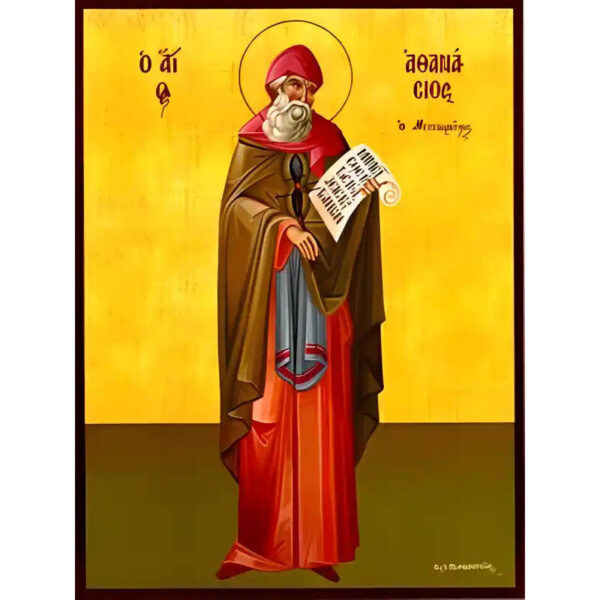 Εικόνα Ορθοδοξίας με περίγραμμα χρυσό σε ξύλο Φλαμουρίας με βάση Εικόνα ΑΓΙΟΣ ΑΘΑΝΑΣΙΟΣ, Ο ΜΕΤΕΩΡΙΤΗΣ, ΟΛΟΣΩΜΟΣ Χειροποίητη Ελληνορθόδοξη εικόνα του Ιησού Χριστού, Κρεμαστή πλάκα βυζαντινής τέχνης, χριστιανική τέχνη Διάσταση 40×30 cm (10,2×7,9 ίντσες) INTRAEK-1447757865120