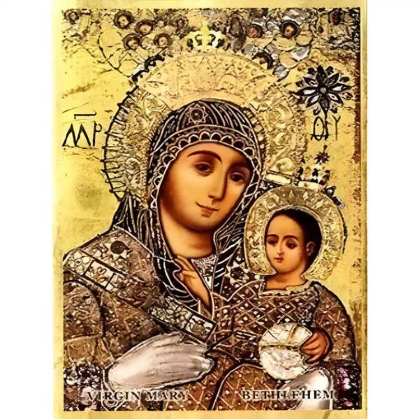 Εικόνα Ορθοδοξίας με περίγραμμα χρυσό σε ξύλο Φλαμουρίας με βάση Εικόνα Παναγία με Χριστό, Βηθλεέμ Χειροποίητη Ελληνορθόδοξη , Κρεμαστή πλάκα βυζαντινής τέχνης, χριστιανική τέχνη Διάσταση 45×35 cm (17,7 x 13,8 ίντσες) INTRAEK-6294671261