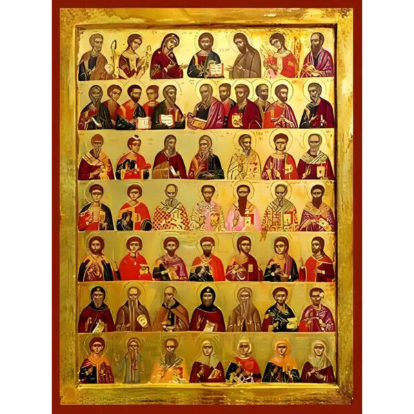 50×40 cm (19,7×15,8 ίντσες) Ο Δημιουργός της εικόνας είναιΑΓ. ΣΠΥΡΙΔΩΝ, ΠΡΟΦ. ΔΑΝΙΗΛ, ΠΡΟΦ. ΗΛΙΑΣ, ΑΓΙΟΙ ΣΥΜΕΩΝ ΘΕΟΔΟΧΟΣ, ΙΑΚΩΒΟΣ ΑΔΕΛΦΟΘΕΟΣ, ΣΤΕΦΑΝΟΣ, ΝΙΚΟΛΑΟΣ, ΔΗΜΗΤΡΙΟΣ, ΓΕΩΡΓΙΟΣ, ΓΡΗΓΟΡΙΟΣ ΘΕΟΛΟΓΟΣ, ΙΩΑΝΝΗΣ ΧΡΥΣΟΣΤΟΜΟΣ, ΒΑΣΙΛΕΙΟΣ, ΑΘΑΝΑΣΙΟΣ, ΝΗΦΩΝ ΠΑΤΡ. ΚΩΝ/ΠΟΛΕΩΣ, ΑΡΤΕΜΙΟΣ, ΑΓΙΟΙ ΠΑΝΤΕΛΕΗΜΩΝ, ΘΕΟΔΩΡΟΣ ΣΤΡΑΤΗΛΑΤΗΣ, ΘΕΟΔΩΡΟΣ ΤΗΡΩΝ, ΜΕΡΚΟΥΡΙΟΣ, ΠΡΟΚΟΠΙΟΣ, ΧΡΙΣΤΟΦΟΡΟΣ, ΑΝΤΩΝΙΟΣ, ΕΥΘΥΜΙΟΣ, ΣΑΒΒΑΣ, ΕΦΡΑΙΜ Ο ΣΥΡΟΣ, ΔΑΒΙΔ ΘΕΣ/ΝΙΚΗΣ, ΚΟΣΜΑΣ, ΔΑΜΙΑΝΟΣ, ΤΡΥΦΩΝ, ΟΝΟΥΦΡΙΟΣ, ΒΛΑΣΙΟΣ, ΠΑΡΑΣΚΕΥΗ, ΑΙΚΑΤΕΡΙΝΗ, ΒΑΡΒΑΡΑ & ΦΩΤΕΙΝΗ.