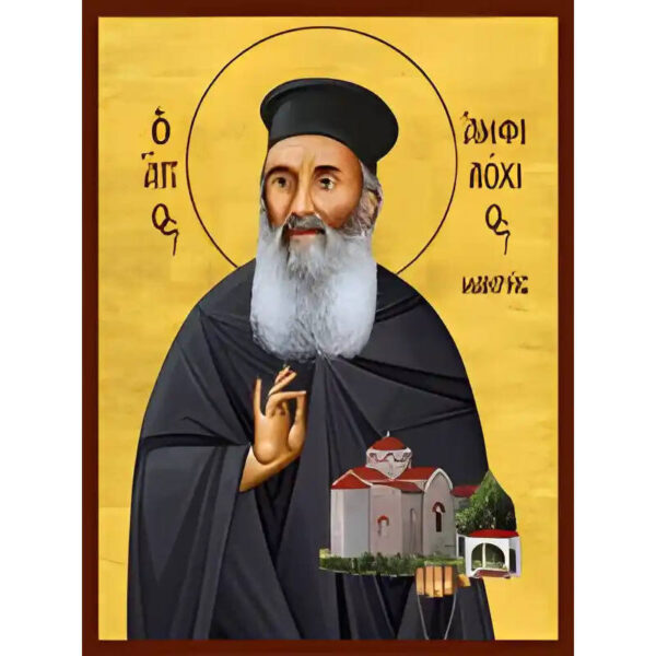 Εικόνα Ορθοδοξίας με περίγραμμα χρυσό σε ξύλο Φλαμουρίας με βάση Εικόνα ΑΓΙΟΣ ΑΜΦΙΛΟΧΙΟΣ ΜΑΚΡΗΣ, ΙΔΡΥΤΗΣ ΤΗΣ ΕΝ ΠΑΤΜΩ ΙΕΡΑΣ ΜΟΝΗΣ ΕΥΑΓΓΕΛΙΣΜΟΥ ΜΗΤΡΟΣ ΗΓΑΠΗΜΕΝΟΥ Χειροποίητη Ελληνορθόδοξη εικόνα του Ιησού Χριστού, Κρεμαστή πλάκα βυζαντινής τέχνης, χριστιανική τέχνη Διάσταση 40×30 cm (10,2×7,9 ίντσες) INTRAEK-1447757865107