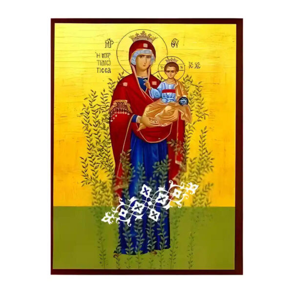Βασικά Χαρακτηριστικά: – Σχέδιο: Κλασική βυζαντινή εικονογραφία με ζωηρό κόκκινο περίγραμμα – Υλικό: Ξύλο Μασίφ Φλαμουρία υψηλής αντοχής με προστατευτικό βερνίκι για ποιότητα που διαρκεί – Προέλευση: Χειροποίητο στην Ελλάδα – Σκοπός: Ιδανικό για γωνιές προσευχής, εκκλησίες, διακόσμηση σπιτιού ή ως δώρο με νόημα Διαθέσιμα μεγέθη: 10×7 cm (3,9 x 2,8 ίντσες) 15×11 cm (5,9 x 4,3 ίντσες) 21×15 cm (8,3 x 5,9 ίντσες) 26×20 cm (10,2 x 7,9 ίντσες) 40×30 cm (15,8 x 11,8 ίντσες) 45×35 cm (17,7 x 13,8 ίντσες) 50×40 cm (19,7 x 15,8 ίντσες)► Εικόνα της Παναγίας της Μυρτιδιώτισσας, ξύλινη. Χειροποίητη ξύλινη εικόνα, ειδικής επεξεργασίας σε σκληρό Φλαμουριά Ξύλο Εικόνα Ορθόδοξης τέχνης, σκαλισμένη ή τυπωμένη σε ξύλο φλαμουριάς υψηλής ποιότητας. Η φυσική απαλότητα και ομοιομορφία του ξύλου τονίζει κάθε λεπτομέρεια του εικονίσματος, αναδεικνύοντας τη βαθιά πνευματικότητα και την ιερότητα της παράδοσης. Ιδανική για οικιακό εικονοστάσι, δώρο βάπτισης, γάμου ή αφιέρωμα σε ναό. Το ξύλο έχει υποστεί ειδική επεξεργασία για αντοχή και αισθητική αρμονία, κρατώντας ζωντανά τα χρώματα και τη μορφή του προσώπου του Αγίου. με ανεξίτηλα χρώματα σε λεπτό καμβά.