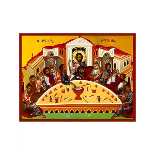 Εικόνα Ορθοδοξίας με περίγραμμα χρυσό σε ξύλο Φλαμουρίας με βάση Εικόνα ΜΥΣΤΙΚΟΣ ΔΕΙΠΝΟΣ Χειροποίητη Ελληνορθόδοξη εικόνα του Ιησού Χριστού, Κρεμαστή πλάκα βυζαντινής τέχνης, χριστιανική τέχνη Διάσταση 15×11 cm (5,9×4,3 ίντσες) INTRAEK-337757864387