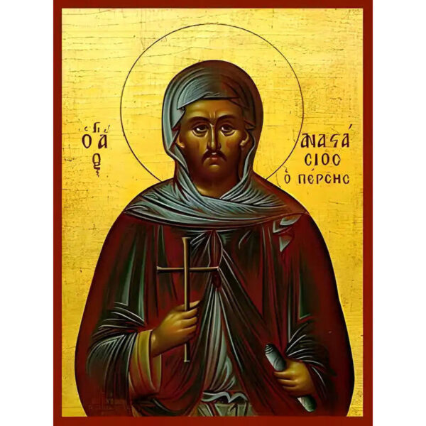 Εικόνα Ορθοδοξίας με περίγραμμα χρυσό σε ξύλο Φλαμουρίας με βάση Εικόνα ΑΓΙΟΣ ΑΝΑΣΤΑΣΙΟΣ ΜΑΡΤΥΣ, Ο ΠΕΡΣΗΣ Χειροποίητη Ελληνορθόδοξη εικόνα του Ιησού Χριστού, Κρεμαστή πλάκα βυζαντινής τέχνης, χριστιανική τέχνη Διάσταση 40×30 cm (10,2×7,9 ίντσες) INTRAEK-1447757865101