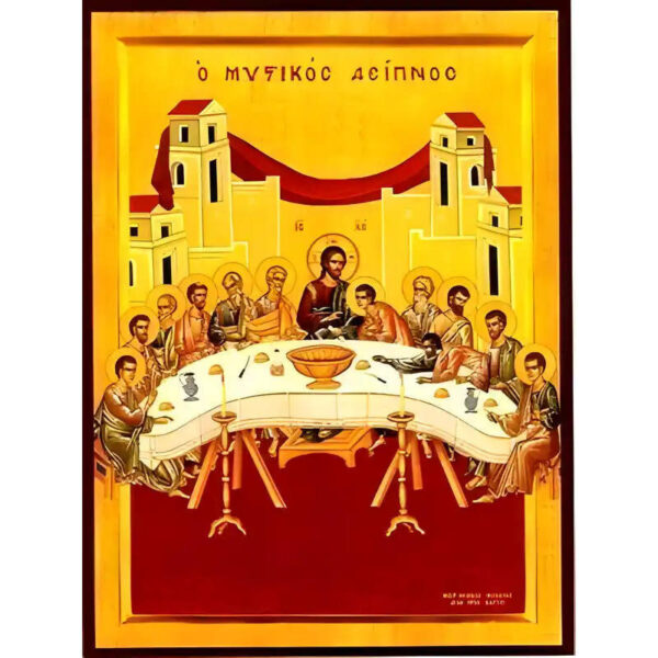 Εικόνα Ορθοδοξίας με περίγραμμα χρυσό σε ξύλο Φλαμουρίας με βάση Εικόνα ΜΥΣΤΙΚΟΣ ΔΕΙΠΝΟΣ Χειροποίητη Ελληνορθόδοξη εικόνα του Ιησού Χριστού, Κρεμαστή πλάκα βυζαντινής τέχνης, χριστιανική τέχνη Διάσταση 15×11 cm (5,9×4,3 ίντσες) INTRAEK-337757864383
