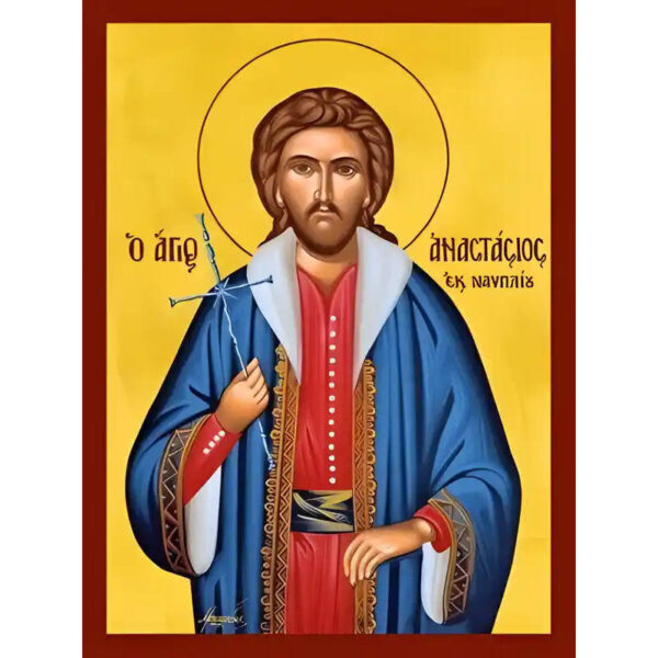Εικόνα Ορθοδοξίας με περίγραμμα χρυσό σε ξύλο Φλαμουρίας με βάση Εικόνα ΑΓΙΟΣ ΑΝΑΣΤΑΣΙΟΣ Ο ΝΑΥΠΛΙΕΥΣ, ΝΕΟΜΑΡΤΥΣ Χειροποίητη Ελληνορθόδοξη εικόνα του Ιησού Χριστού, Κρεμαστή πλάκα βυζαντινής τέχνης, χριστιανική τέχνη Διάσταση 40×30 cm (10,2×7,9 ίντσες) INTRAEK-1447757865099