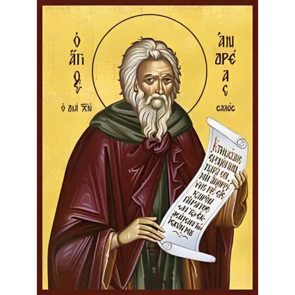 Εικόνα Ορθοδοξίας με περίγραμμα χρυσό σε ξύλο Φλαμουρίας με βάση Εικόνα ΑΓΙΟΣ ΑΝΔΡΕΑΣ Ο ΔΙΑ ΧΡΙΣΤΟΝ ΣΑΛΟΣ Χειροποίητη Ελληνορθόδοξη εικόνα του Ιησού Χριστού, Κρεμαστή πλάκα βυζαντινής τέχνης, χριστιανική τέχνη Διάσταση 40×30 cm (10,2×7,9 ίντσες) INTRAEK-1447757865098