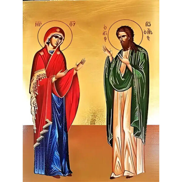 Εικόνα Ορθοδοξίας με περίγραμμα χρυσό σε ξύλο Φλαμουρίας με βάση Εικόνα ΠΑΝΑΓΙΑ ΚΑΙ ΑΓΙΟΣ ΙΩΑΝΝΗΣ Ο ΠΡΟΔΡΟΜΟΣ, ΕΚ ΤΗΣ ΔΕΗΣΕΩΣ, ΟΛΟΣΩΜΟΙ Χειροποίητη Ελληνορθόδοξη εικόνα του Ιησού Χριστού, Κρεμαστή πλάκα βυζαντινής τέχνης, χριστιανική τέχνη Διάσταση 15×11 cm (5,9×4,3 ίντσες) INTRAEK-337757864363