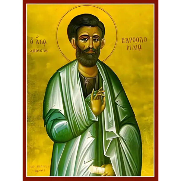 Εικόνα Ορθοδοξίας με περίγραμμα χρυσό σε ξύλο Φλαμουρίας με βάση Εικόνα ΑΓΙΟΣ ΑΠΟΣΤΟΛΟΣ ΒΑΡΘΟΛΟΜΑΙΟΣ Χειροποίητη Ελληνορθόδοξη εικόνα του Ιησού Χριστού, Κρεμαστή πλάκα βυζαντινής τέχνης, χριστιανική τέχνη Διάσταση 40×30 cm (10,2×7,9 ίντσες) INTRAEK-1447757865079