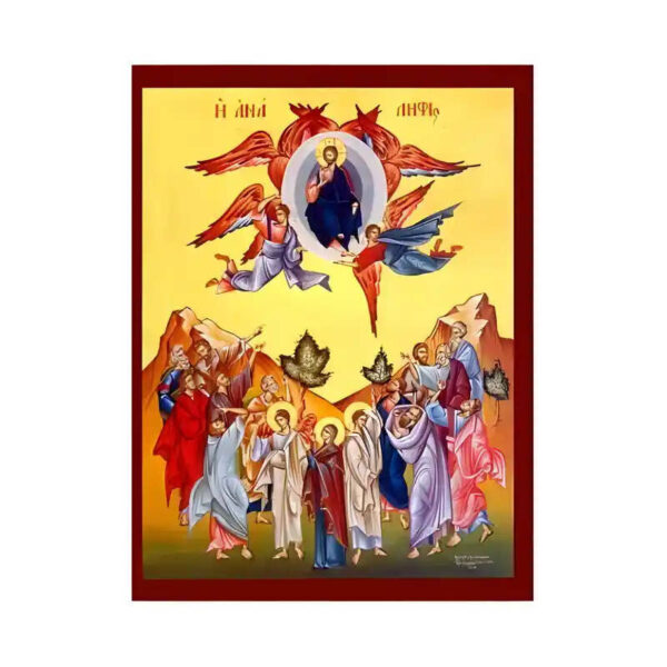 Βασικά Χαρακτηριστικά: – Σχέδιο: Κλασική βυζαντινή εικονογραφία με ζωηρό κόκκινο περίγραμμα – Υλικό: Ξύλο Μασίφ Φλαμουρία υψηλής αντοχής με προστατευτικό βερνίκι για ποιότητα που διαρκεί – Προέλευση: Χειροποίητο στην Ελλάδα – Σκοπός: Ιδανικό για γωνιές προσευχής, εκκλησίες, διακόσμηση σπιτιού ή ως δώρο με νόημα Διαθέσιμα μεγέθη: 10×7 cm (3,9 x 2,8 ίντσες) 15×11 cm (5,9 x 4,3 ίντσες) 21×15 cm (8,3 x 5,9 ίντσες) 26×20 cm (10,2 x 7,9 ίντσες) 40×30 cm (15,8 x 11,8 ίντσες) 45×35 cm (17,7 x 13,8 ίντσες) 50×40 cm (19,7 x 15,8 ίντσες)► Εικόνα Ανάληψη του Χριστού ξύλινη. Χειροποίητη ξύλινη εικόνα, ειδικής επεξεργασίας σε σκληρό Φλαμουριά Ξύλο Εικόνα Ορθόδοξης τέχνης, σκαλισμένη ή τυπωμένη σε ξύλο φλαμουριάς υψηλής ποιότητας. Η φυσική απαλότητα και ομοιομορφία του ξύλου τονίζει κάθε λεπτομέρεια του εικονίσματος, αναδεικνύοντας τη βαθιά πνευματικότητα και την ιερότητα της παράδοσης. Ιδανική για οικιακό εικονοστάσι, δώρο βάπτισης, γάμου ή αφιέρωμα σε ναό. Το ξύλο έχει υποστεί ειδική επεξεργασία για αντοχή και αισθητική αρμονία, κρατώντας ζωντανά τα χρώματα και τη μορφή του προσώπου του Αγίου. με ανεξίτηλα χρώματα σε λεπτό καμβά.