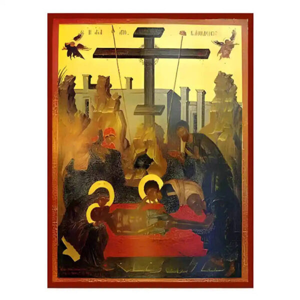 Εικόνα Ορθοδοξίας με περίγραμμα χρυσό σε ξύλο Φλαμουρίας με βάση Εικόνα Αποκαθήλωση του Χριστού Χειροποίητη Ελληνορθόδοξη , Κρεμαστή πλάκα βυζαντινής τέχνης, χριστιανική τέχνη Διάσταση 10×7 cm (3,9 x 2,8 ίντσες) INTRAEK-670838