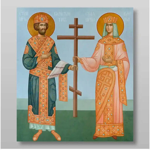 Εικόνα Ορθοδοξίας με περίγραμμα χρυσό σε ξύλο Φλαμουρίας με βάση Οι άγιοι Κωνσταντίνου και Έλενας, ισάξιοι των Αποστόλων, Χειροποίητη Ελληνορθόδοξη , Κρεμαστή πλάκα βυζαντινής τέχνης, χριστιανική τέχνη Διάσταση 15×11 cm (5,9 x 4,3 ίντσες) INTRAEK-2858
