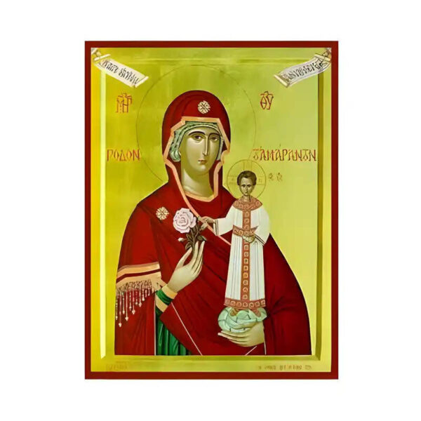 Εικόνα Ορθοδοξίας με περίγραμμα χρυσό σε ξύλο Φλαμουρίας με βάση Εικόνα Παναγία Ρόδο το Αμάραντο Χειροποίητη Ελληνορθόδοξη , Κρεμαστή πλάκα βυζαντινής τέχνης, χριστιανική τέχνη Διάσταση 45×35 cm (17,7 x 13,8 ίντσες) INTRAEK-6294671202