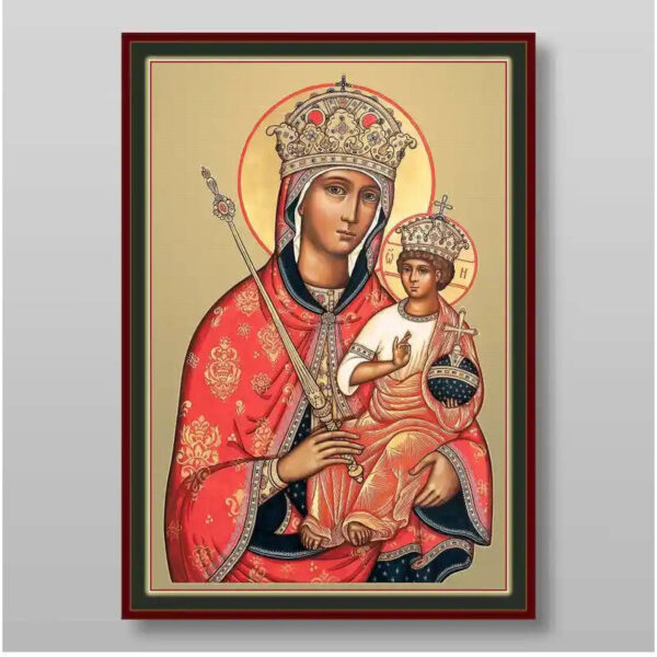 Εικόνα Ορθοδοξίας με περίγραμμα χρυσό σε ξύλο Φλαμουρίας με βάση Εικόνα της Θεοτόκου του Γαλατά Χειροποίητη Ελληνορθόδοξη , Κρεμαστή πλάκα βυζαντινής τέχνης, χριστιανική τέχνη Διάσταση 15×11 cm (5,9 x 4,3 ίντσες) INTRAEK-2853