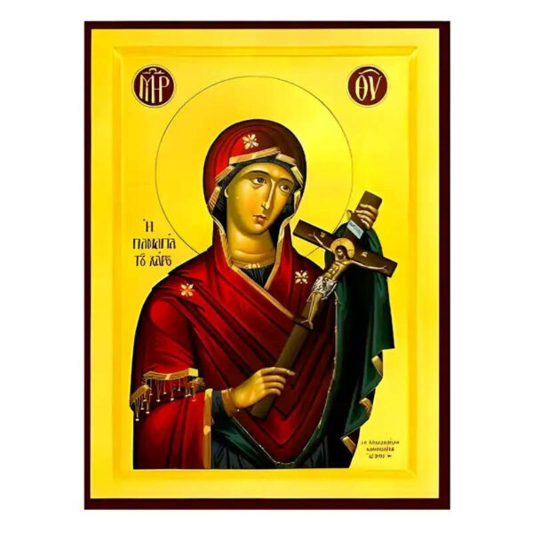 Βασικά Χαρακτηριστικά: – Σχέδιο: Κλασική βυζαντινή εικονογραφία με ζωηρό κόκκινο περίγραμμα – Υλικό: Ξύλο Μασίφ Φλαμουρία υψηλής αντοχής με προστατευτικό βερνίκι για ποιότητα που διαρκεί – Προέλευση: Χειροποίητο στην Ελλάδα – Σκοπός: Ιδανικό για γωνιές προσευχής, εκκλησίες, διακόσμηση σπιτιού ή ως δώρο με νόημα Διαθέσιμα μεγέθη: 10×7 cm (3,9 x 2,8 ίντσες) 15×11 cm (5,9 x 4,3 ίντσες) 21×15 cm (8,3 x 5,9 ίντσες) 26×20 cm (10,2 x 7,9 ίντσες) 40×30 cm (15,8 x 11,8 ίντσες) 45×35 cm (17,7 x 13,8 ίντσες) 50×40 cm (19,7 x 15,8 ίντσες)► Εικόνα της Παναγίας του Χάρου, ξύλινη.  Χειροποίητη ξύλινη εικόνα, ειδικής επεξεργασίας σε σκληρό Φλαμουριά Ξύλο Εικόνα Ορθόδοξης τέχνης, σκαλισμένη ή τυπωμένη σε ξύλο φλαμουριάς υψηλής ποιότητας. Η φυσική απαλότητα και ομοιομορφία του ξύλου τονίζει κάθε λεπτομέρεια του εικονίσματος, αναδεικνύοντας τη βαθιά πνευματικότητα και την ιερότητα της παράδοσης. Ιδανική για οικιακό εικονοστάσι, δώρο βάπτισης, γάμου ή αφιέρωμα σε ναό. Το ξύλο έχει υποστεί ειδική επεξεργασία για αντοχή και αισθητική αρμονία, κρατώντας ζωντανά τα χρώματα και τη μορφή του προσώπου του Αγίου. με ανεξίτηλα χρώματα σε λεπτό καμβά.