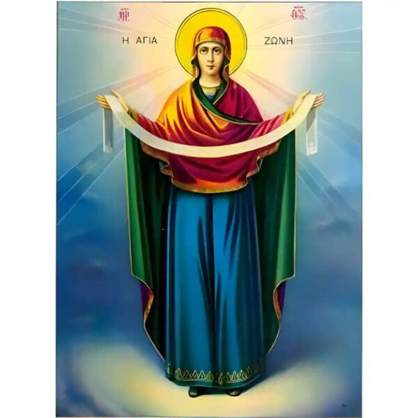 Βασικά Χαρακτηριστικά: – Σχέδιο: Κλασική βυζαντινή εικονογραφία με ζωηρό κόκκινο περίγραμμα – Υλικό: Ξύλο Μασίφ Φλαμουρία υψηλής αντοχής με προστατευτικό βερνίκι για ποιότητα που διαρκεί – Προέλευση: Χειροποίητο στην Ελλάδα – Σκοπός: Ιδανικό για γωνιές προσευχής, εκκλησίες, διακόσμηση σπιτιού ή ως δώρο με νόημα Διαθέσιμα μεγέθη: 10×7 cm (3,9 x 2,8 ίντσες) 15×11 cm (5,9 x 4,3 ίντσες) 21×15 cm (8,3 x 5,9 ίντσες) 26×20 cm (10,2 x 7,9 ίντσες) 40×30 cm (15,8 x 11,8 ίντσες) 45×35 cm (17,7 x 13,8 ίντσες) 50×40 cm (19,7 x 15,8 ίντσες)► Εικόνα της Αγίας Ζώνης