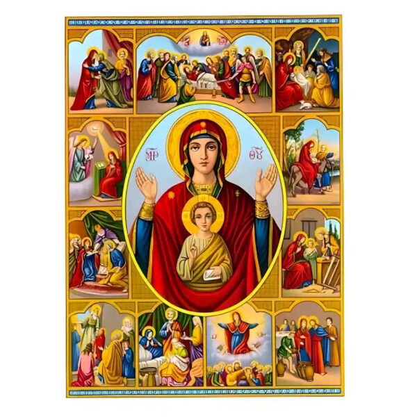 Βασικά Χαρακτηριστικά: – Σχέδιο: Κλασική βυζαντινή εικονογραφία με ζωηρό κόκκινο περίγραμμα – Υλικό: Ξύλο Μασίφ Φλαμουρία υψηλής αντοχής με προστατευτικό βερνίκι για ποιότητα που διαρκεί – Προέλευση: Χειροποίητο στην Ελλάδα – Σκοπός: Ιδανικό για γωνιές προσευχής, εκκλησίες, διακόσμηση σπιτιού ή ως δώρο με νόημα Διαθέσιμα μεγέθη: 10×7 cm (3,9 x 2,8 ίντσες) 15×11 cm (5,9 x 4,3 ίντσες) 21×15 cm (8,3 x 5,9 ίντσες) 26×20 cm (10,2 x 7,9 ίντσες) 40×30 cm (15,8 x 11,8 ίντσες) 45×35 cm (17,7 x 13,8 ίντσες) 50×40 cm (19,7 x 15,8 ίντσες)► Εικόνα του βίου της Παναγίας, ξύλινη. Χειροποίητη ξύλινη εικόνα, ειδικής επεξεργασίας σε σκληρό Φλαμουριά Ξύλο Εικόνα Ορθόδοξης τέχνης, σκαλισμένη ή τυπωμένη σε ξύλο φλαμουριάς υψηλής ποιότητας. Η φυσική απαλότητα και ομοιομορφία του ξύλου τονίζει κάθε λεπτομέρεια του εικονίσματος, αναδεικνύοντας τη βαθιά πνευματικότητα και την ιερότητα της παράδοσης. Ιδανική για οικιακό εικονοστάσι, δώρο βάπτισης, γάμου ή αφιέρωμα σε ναό. Το ξύλο έχει υποστεί ειδική επεξεργασία για αντοχή και αισθητική αρμονία, κρατώντας ζωντανά τα χρώματα και τη μορφή του προσώπου του Αγίου. με ανεξίτηλα χρώματα σε λεπτό καμβά.