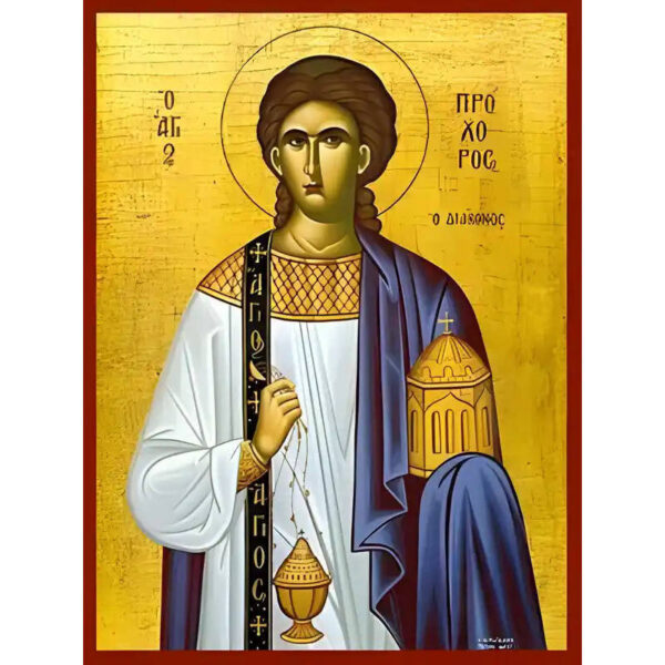 Εικόνα Ορθοδοξίας με περίγραμμα χρυσό σε ξύλο Φλαμουρίας με βάση Εικόνα ΑΓΙΟΣ ΑΠΟΣΤΟΛΟΣ ΠΡΟΧΟΡΟΣ, Ο ΔΙΑΚΟΝΟΣ Χειροποίητη Ελληνορθόδοξη εικόνα του Ιησού Χριστού, Κρεμαστή πλάκα βυζαντινής τέχνης, χριστιανική τέχνη Διάσταση 40×30 cm (10,2×7,9 ίντσες) INTRAEK-1447757865019