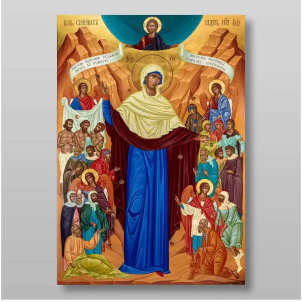 Εικόνα Ορθοδοξίας με περίγραμμα χρυσό σε ξύλο Φλαμουρίας με βάση The Mother of God Joy of All Who Sorrow Χειροποίητη Ελληνορθόδοξη , Κρεμαστή πλάκα βυζαντινής τέχνης, χριστιανική τέχνη Διάσταση 15×11 cm (5,9 x 4,3 ίντσες) INTRAEK-2808