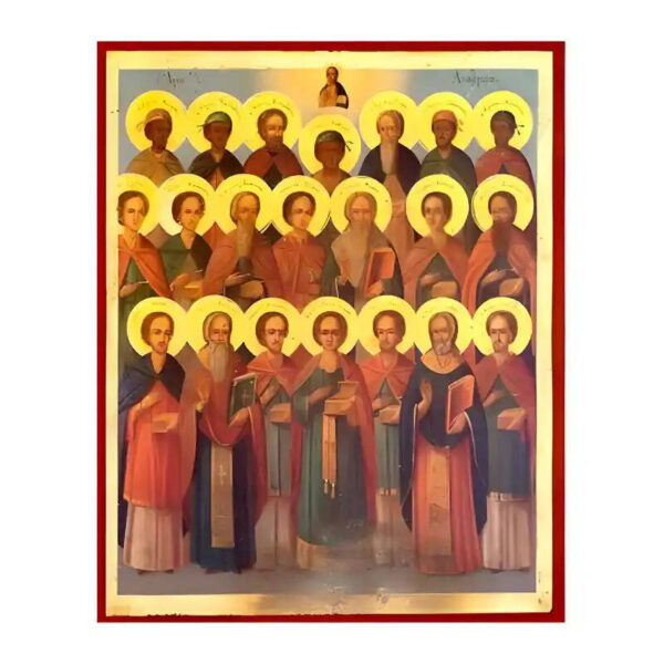 Εικόνα Ορθοδοξίας με περίγραμμα χρυσό σε ξύλο Φλαμουρίας με βάση Εικόνα Άγιοι είκοσι ένας Ανάργυροι Χειροποίητη Ελληνορθόδοξη , Κρεμαστή πλάκα βυζαντινής τέχνης, χριστιανική τέχνη Διάσταση 45×35 cm (17,7 x 13,8 ίντσες) INTRAEK-6294671153