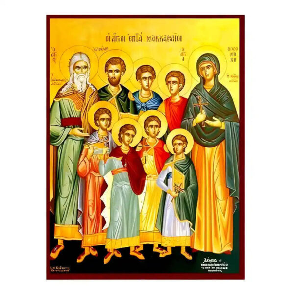 Βασικά Χαρακτηριστικά: – Σχέδιο: Κλασική βυζαντινή εικονογραφία με ζωηρό κόκκινο περίγραμμα – Υλικό: Ξύλο Μασίφ Φλαμουρία υψηλής αντοχής με προστατευτικό βερνίκι για ποιότητα που διαρκεί – Προέλευση: Χειροποίητο στην Ελλάδα – Σκοπός: Ιδανικό για γωνιές προσευχής, εκκλησίες, διακόσμηση σπιτιού ή ως δώρο με νόημα Διαθέσιμα μεγέθη: 10×7 cm (3,9 x 2,8 ίντσες) 15×11 cm (5,9 x 4,3 ίντσες) 21×15 cm (8,3 x 5,9 ίντσες) 26×20 cm (10,2 x 7,9 ίντσες) 40×30 cm (15,8 x 11,8 ίντσες) 45×35 cm (17,7 x 13,8 ίντσες) 50×40 cm (19,7 x 15,8 ίντσες)► Εικόνα των Αγίων Επτά Μακκαβαίων