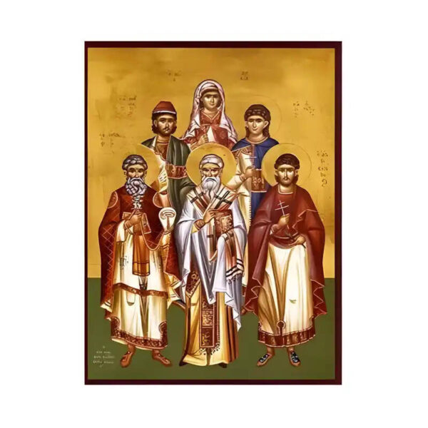 Εικόνα Ορθοδοξίας με περίγραμμα χρυσό σε ξύλο Φλαμουρίας με βάση Εικόνα Άγιοι Ευστράτιος, Αυξέντιος, Ευγένιος, Μαρδάριος, Ορέστης, Μάρτυρες Σεβαστείας και Λουκία Χειροποίητη Ελληνορθόδοξη , Κρεμαστή πλάκα βυζαντινής τέχνης, χριστιανική τέχνη Διάσταση 45×35 cm (17,7 x 13,8 ίντσες) INTRAEK-6294671150