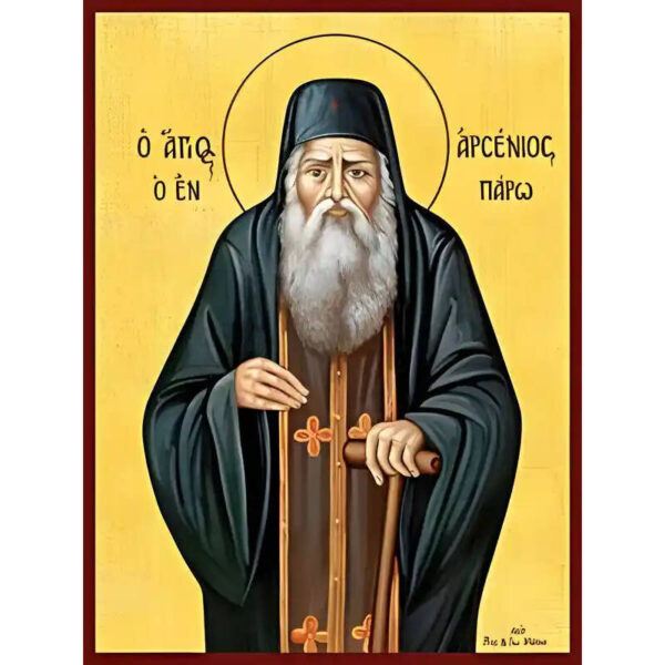 Εικόνα Ορθοδοξίας με περίγραμμα χρυσό σε ξύλο Φλαμουρίας με βάση Εικόνα ΑΓΙΟΣ ΑΡΣΕΝΙΟΣ Ο ΝΕΟΣ, Ο ΕΝ ΤΗ ΝΗΣΩ ΠΑΡΩ Χειροποίητη Ελληνορθόδοξη εικόνα του Ιησού Χριστού, Κρεμαστή πλάκα βυζαντινής τέχνης, χριστιανική τέχνη Διάσταση 40×30 cm (10,2×7,9 ίντσες) INTRAEK-1447757865001