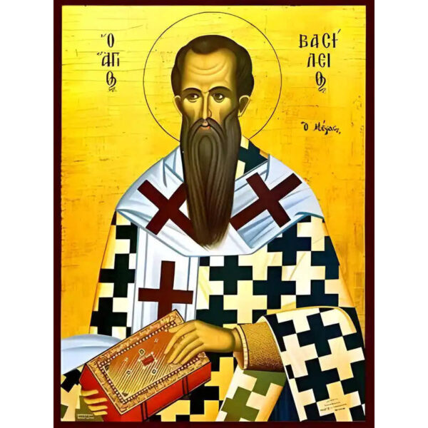 Εικόνα Ορθοδοξίας με περίγραμμα χρυσό σε ξύλο Φλαμουρίας με βάση Εικόνα ΑΓΙΟΣ ΒΑΣΙΛΕΙΟΣ Ο ΜΕΓΑΣ, ΑΡΧΙΕΠΙΣΚΟΠΟΣ ΚΑΙΣΑΡΕΙΑΣ, ΚΑΠΠΑΔΟΚΙΑ Χειροποίητη Ελληνορθόδοξη εικόνα του Ιησού Χριστού, Κρεμαστή πλάκα βυζαντινής τέχνης, χριστιανική τέχνη Διάσταση 40×30 cm (10,2×7,9 ίντσες) INTRAEK-1447757864989