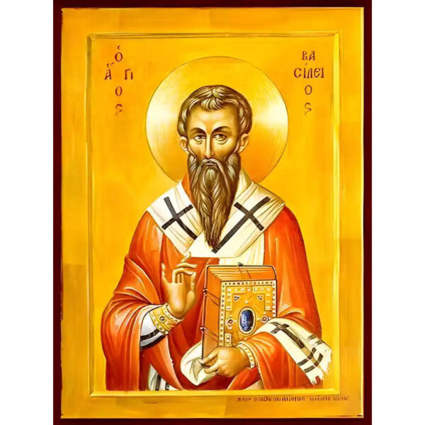 Εικόνα Ορθοδοξίας με περίγραμμα χρυσό σε ξύλο Φλαμουρίας με βάση Εικόνα ΑΓΙΟΣ ΒΑΣΙΛΕΙΟΣ Ο ΜΕΓΑΣ, ΑΡΧΙΕΠΙΣΚΟΠΟΣ ΚΑΙΣΑΡΕΙΑΣ, ΚΑΠΠΑΔΟΚΙΑ Χειροποίητη Ελληνορθόδοξη εικόνα του Ιησού Χριστού, Κρεμαστή πλάκα βυζαντινής τέχνης, χριστιανική τέχνη Διάσταση 40×30 cm (10,2×7,9 ίντσες) INTRAEK-1447757864987