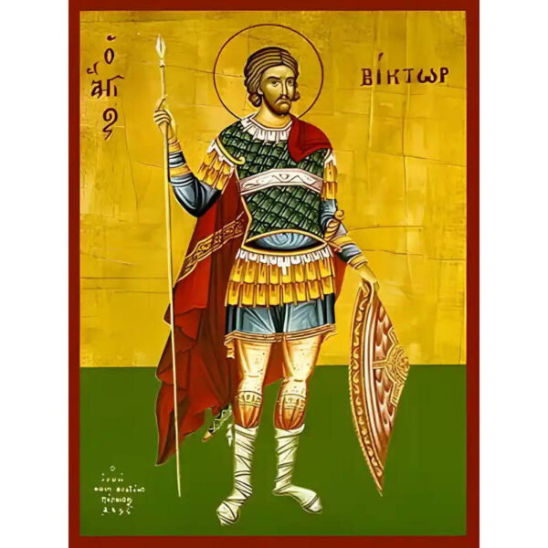 Εικόνα Ορθοδοξίας με περίγραμμα χρυσό σε ξύλο Φλαμουρίας με βάση Εικόνα ΑΓΙΟΣ ΒΙΚΤΩΡ ΔΑΜΑΣΚΟΥ, ΟΛΟΣΩΜΟΣ Χειροποίητη Ελληνορθόδοξη εικόνα του Ιησού Χριστού, Κρεμαστή πλάκα βυζαντινής τέχνης, χριστιανική τέχνη Διάσταση 40×30 cm (10,2×7,9 ίντσες) INTRAEK-1447757864977