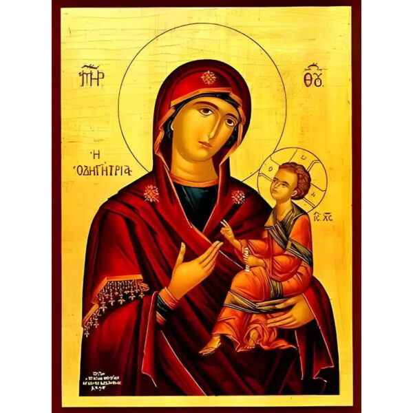 Εικόνα Ορθοδοξίας με περίγραμμα χρυσό σε ξύλο Φλαμουρίας με βάση Εικόνα ΠΑΝΑΓΙΑ ΜΕ ΧΡΙΣΤΟ, ΟΔΗΓΗΤΡΙΑ Χειροποίητη Ελληνορθόδοξη εικόνα του Ιησού Χριστού, Κρεμαστή πλάκα βυζαντινής τέχνης, χριστιανική τέχνη Διάσταση 15×11 cm (5,9×4,3 ίντσες) INTRAEK-337757864258