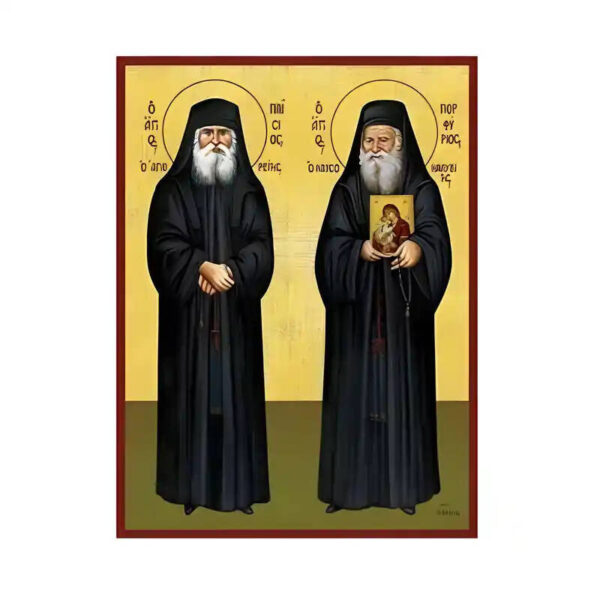 Εικόνα Ορθοδοξίας με περίγραμμα χρυσό σε ξύλο Φλαμουρίας με βάση Εικόνα Άγιοι Παΐσιος και Πορφύριος Χειροποίητη Ελληνορθόδοξη , Κρεμαστή πλάκα βυζαντινής τέχνης, χριστιανική τέχνη Διάσταση 45×35 cm (17,7 x 13,8 ίντσες) INTRAEK-6294671118